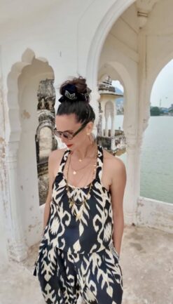 La tela es fresca, liviana, de fácil secado y con detalles dorados gold foiled.