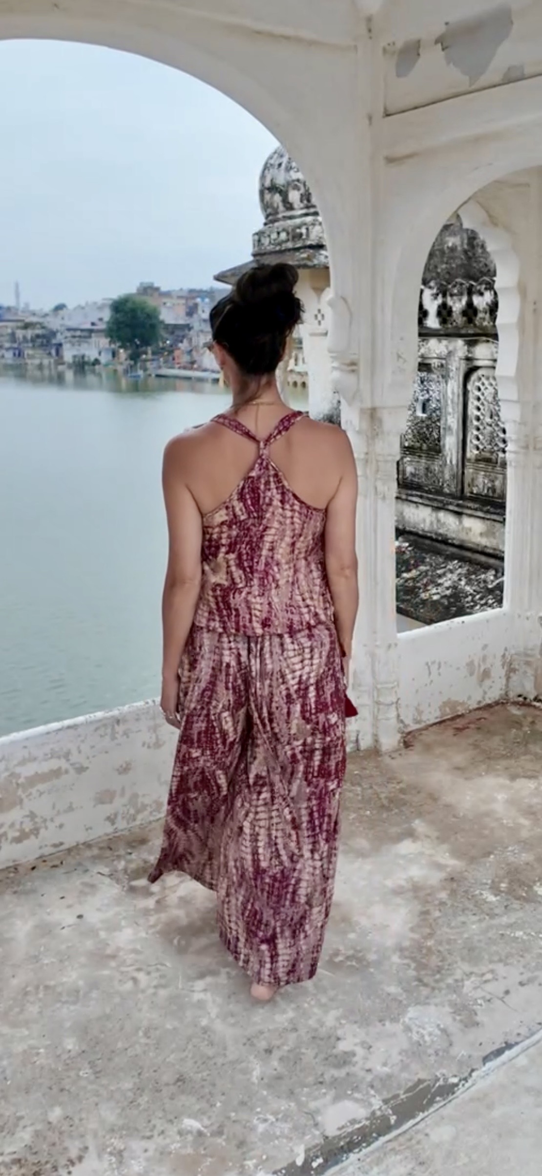 Set de pantalón palazzo y top , el pantalón está diseñado para ajustarse desde la talla XS a Xl , pretina trasera elasticada, bolsillos y lazos, es un pantalón super cómodo y versátil de usar.