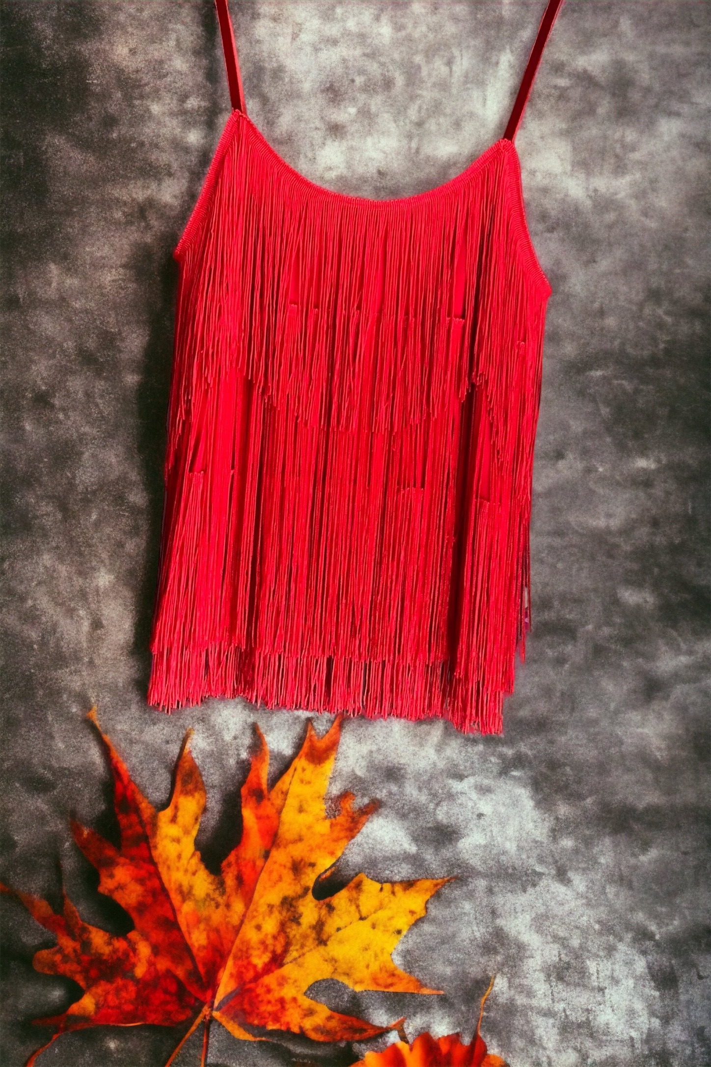 Etiquetas: escote V en espalda, Vestido corto en flecos de seda