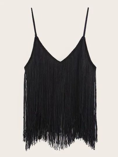 Top elasticado de flecos largos de 30 cm , escote V y breteles de terciopelo – talla standard