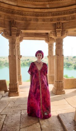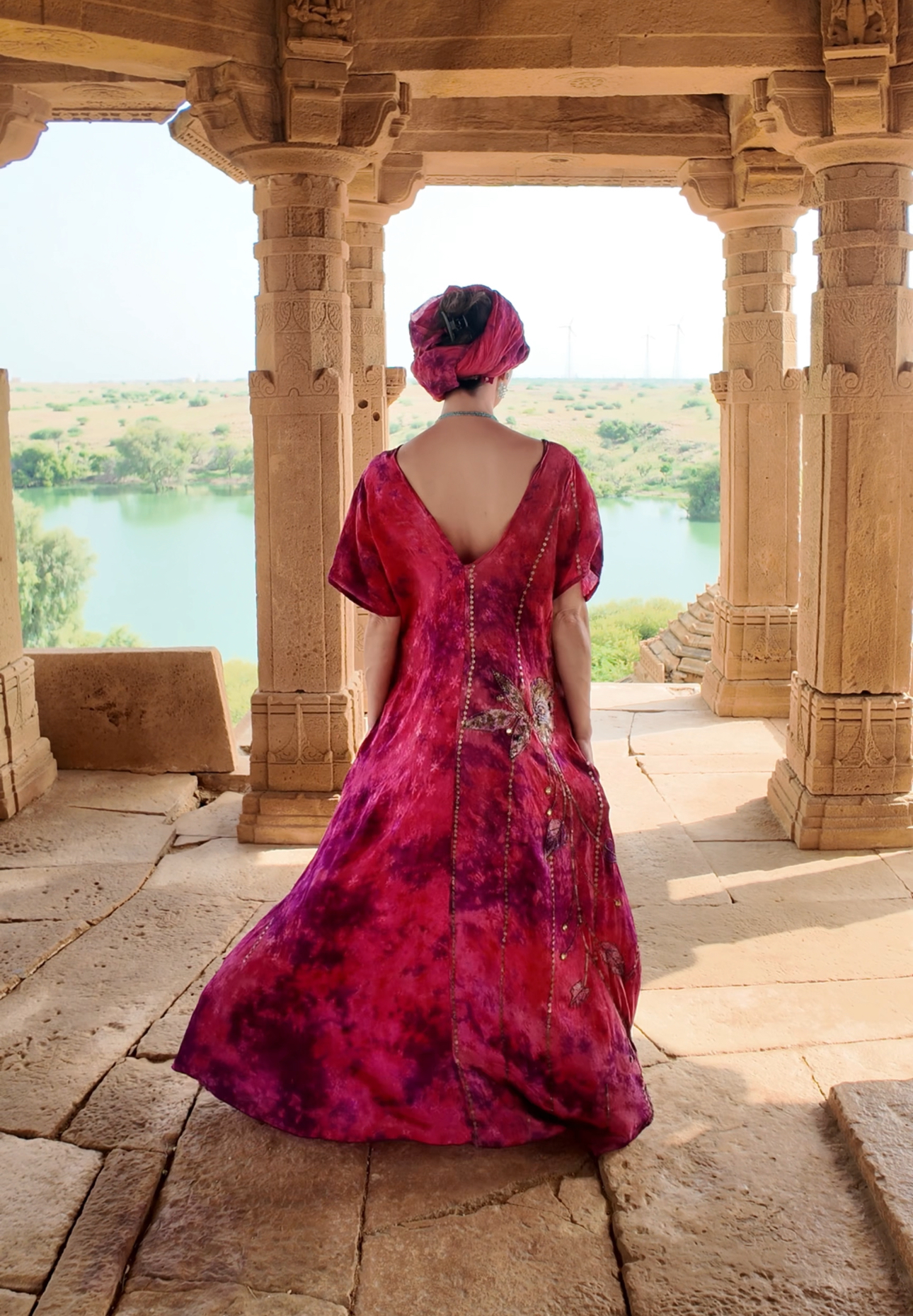 Una pequeña colección de 3 diferentes diseños, Kaftanes y Vestidos escotes en V con y sin mangas , saree 100% seda reciclada, escogidas una a una , telas con unas caídas y movimientos propios de la real seda , detalles de aplicaciones de mostacillas, cuentas y bordados a mano , cada uno de estos vestidos tiene una alegre historia en el proceso.
