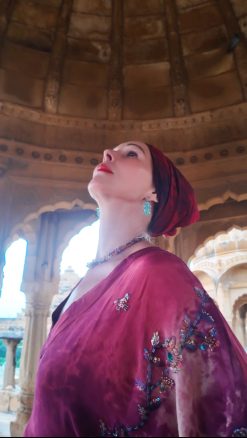 Una pequeña colección de 3 diferentes diseños, Kaftanes y Vestidos escotes en V con y sin mangas , saree 100% seda reciclada, escogidas una a una , telas con unas caídas y movimientos propios de la real seda , detalles de aplicaciones de mostacillas, cuentas y bordados a mano , cada uno de estos vestidos tiene una alegre historia en el proceso.