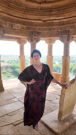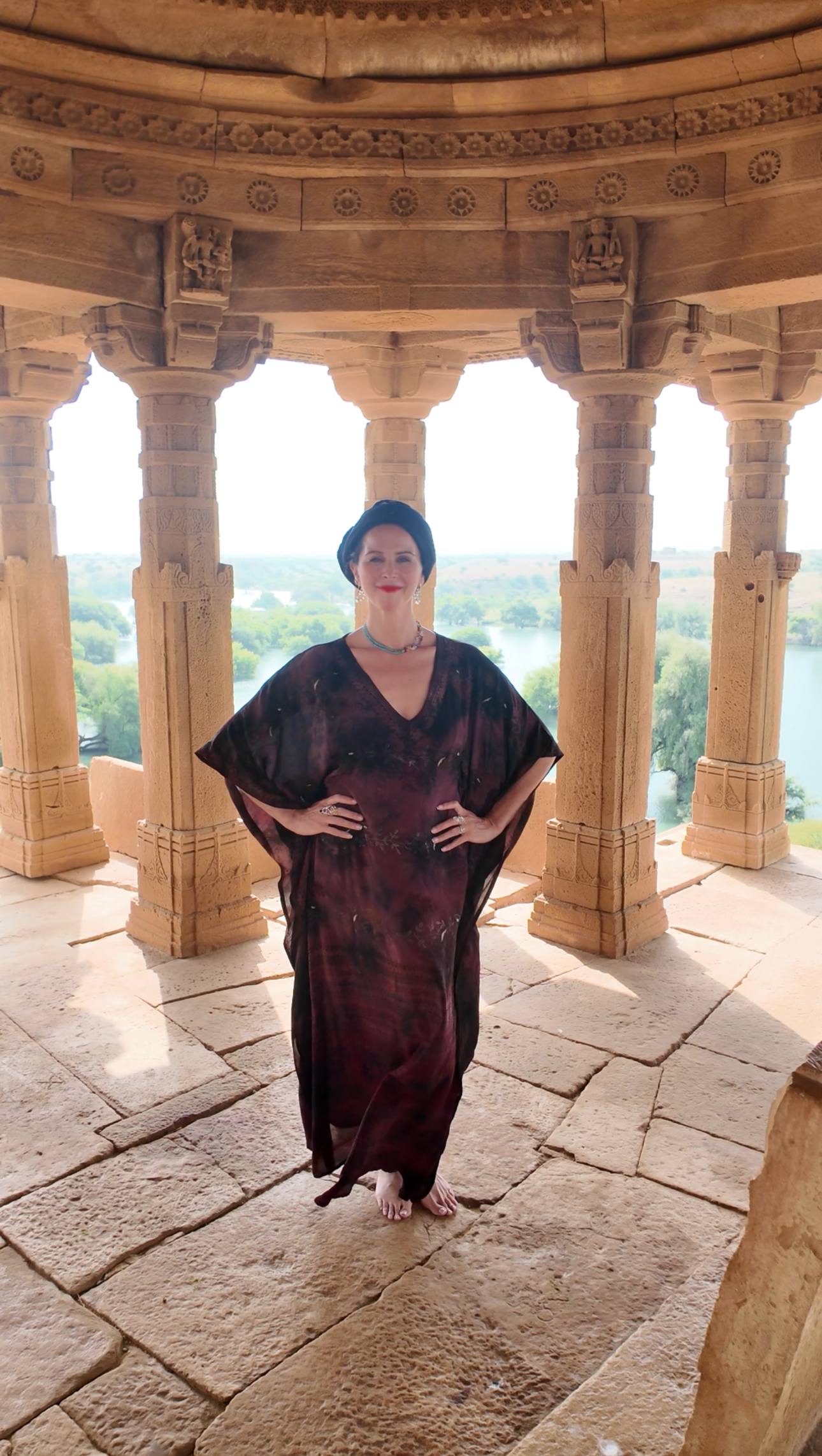Una pequeña colección de 3 diferentes diseños, Kaftanes y Vestidos escotes en V con y sin mangas , saree 100% seda reciclada, escogidas una a una , telas con unas caídas y movimientos propios de la real seda , detalles de aplicaciones de mostacillas, cuentas y bordados a mano , cada uno de estos vestidos tiene una alegre historia en el proceso.