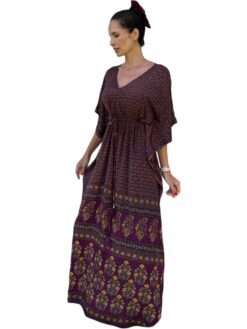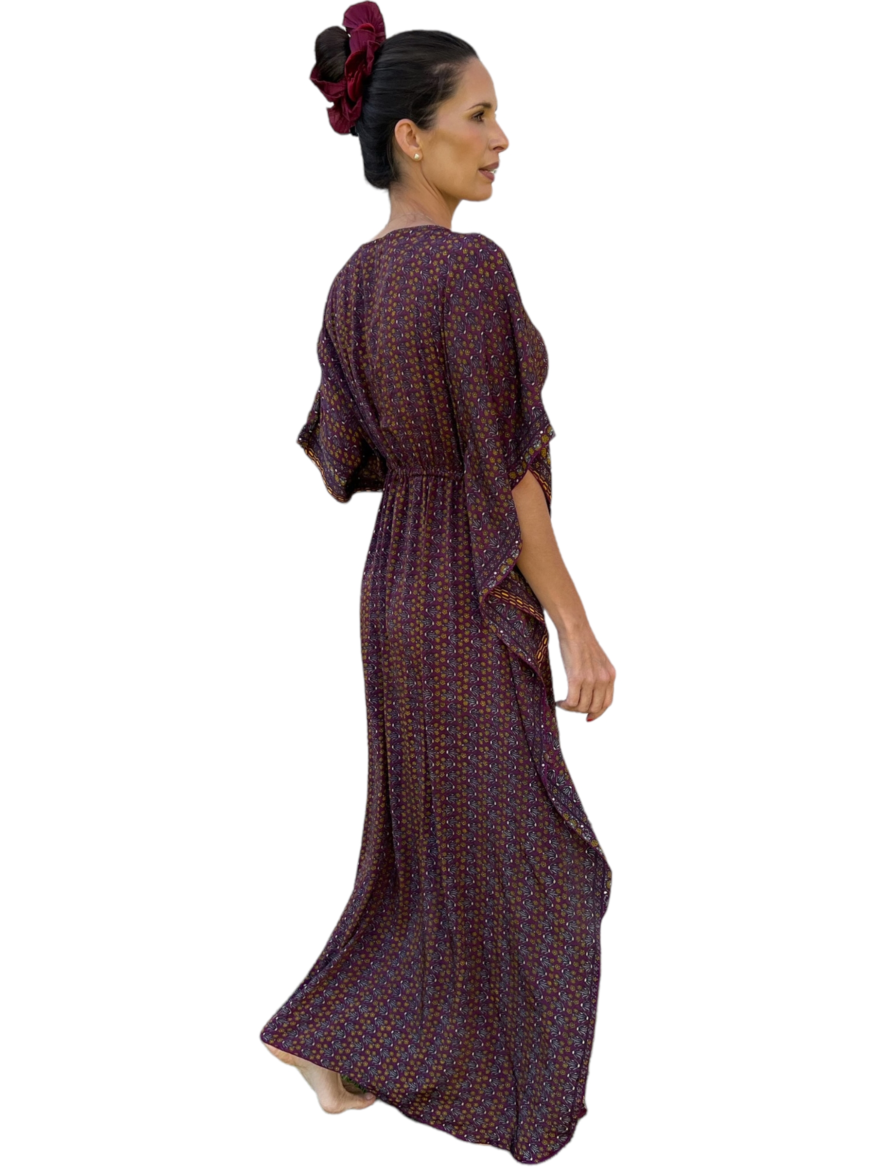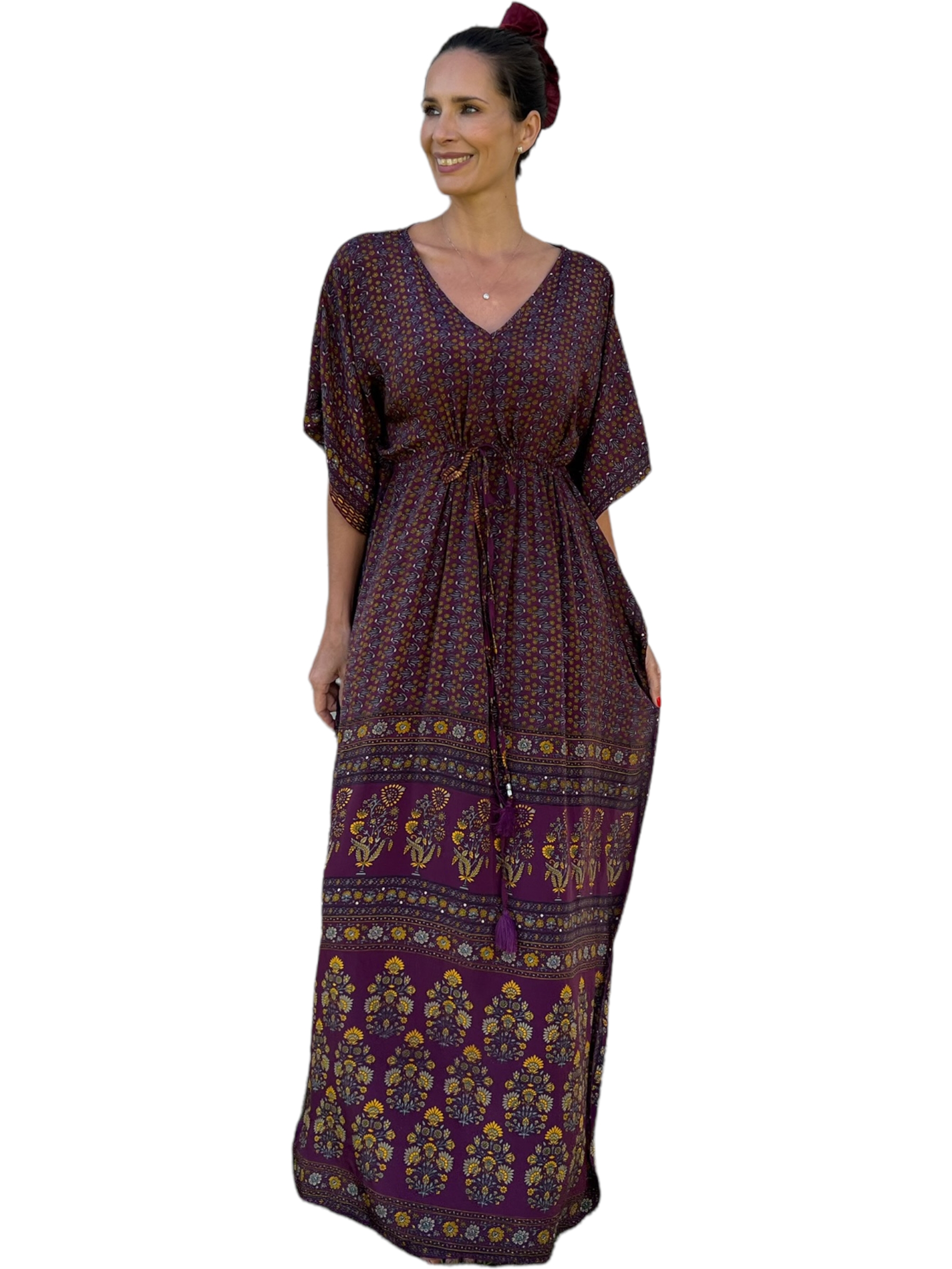 Kaftan de Seda Burdeo , auto ajustable en cintura y escote V delantero